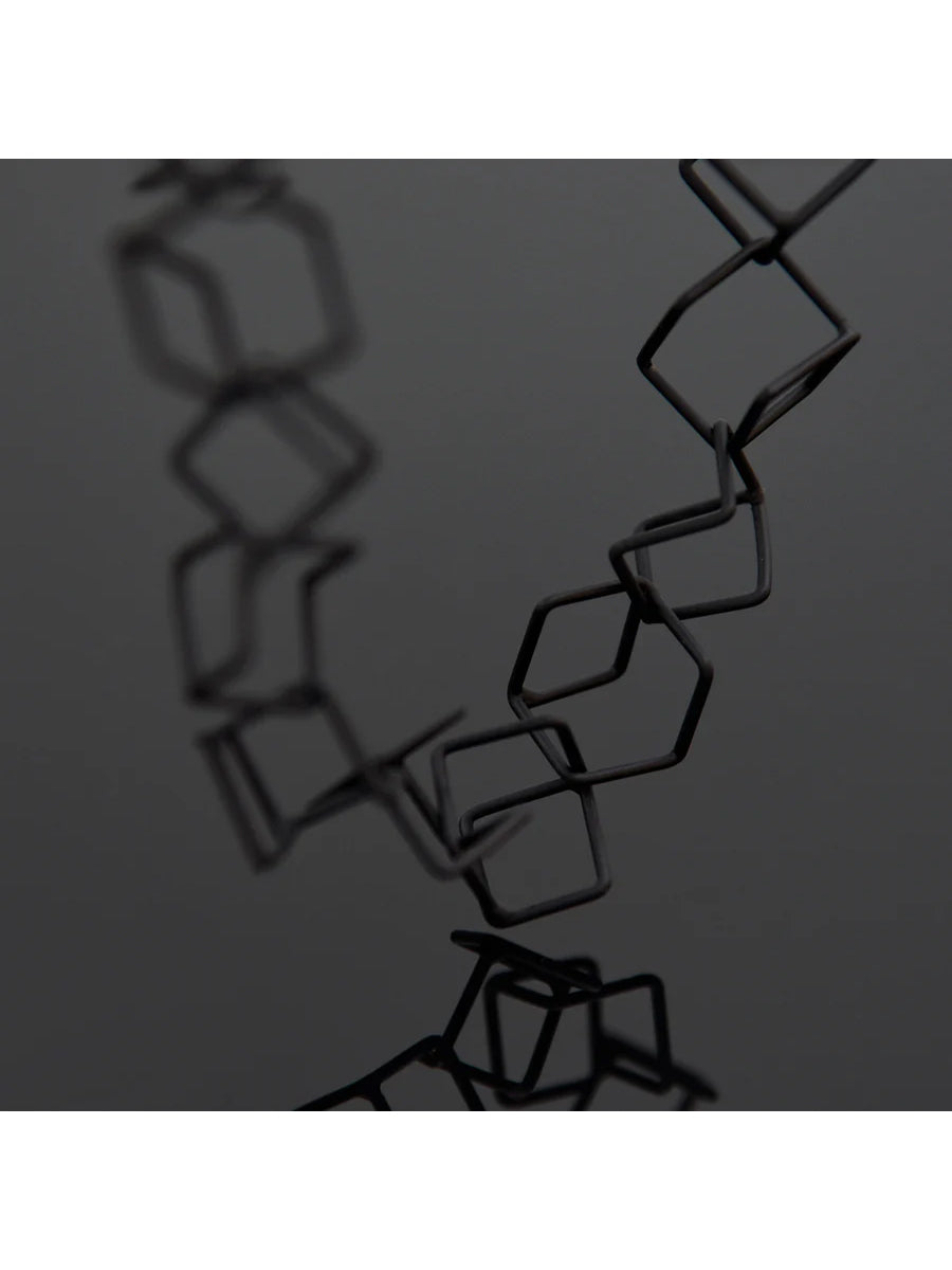 This chunky bracelet is a chain of intricately linked cube-like forms. This statement piece is airy and easy to pair. With its magnetic clasp, this bracelet offers easy customization for a comfortable fit, also the extra clasps provided to ensure it stays securely in place, enhancing the overall ease of wearing.