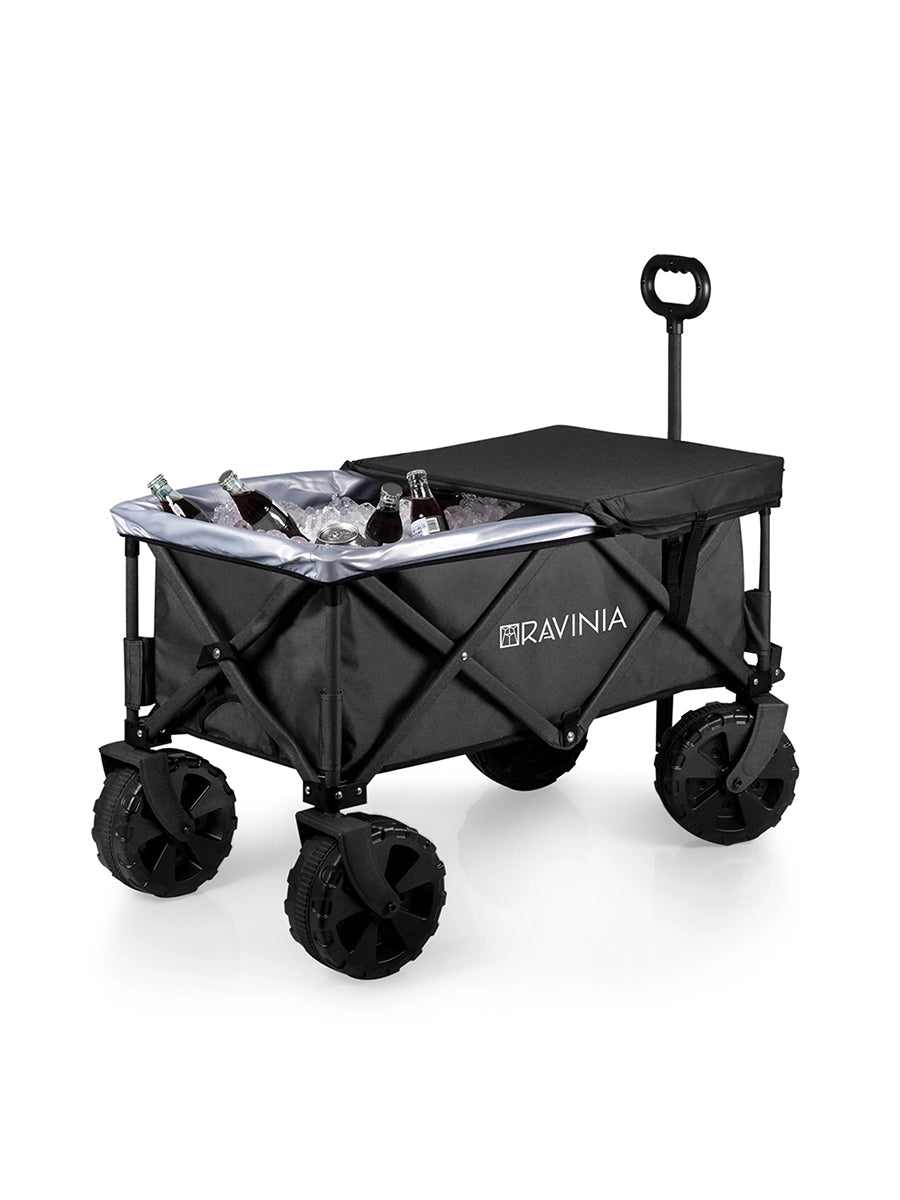 Upgrade your Ravinia Wagon with the Adventure Wagon Table and Liner! The waterproof PVC liner fits snugly into the bed of the wagon, and features a drainage spout for melting ice. The wagon lid doubles as a sturdy table top, and folds in half for easy access to the wagon at the same time!